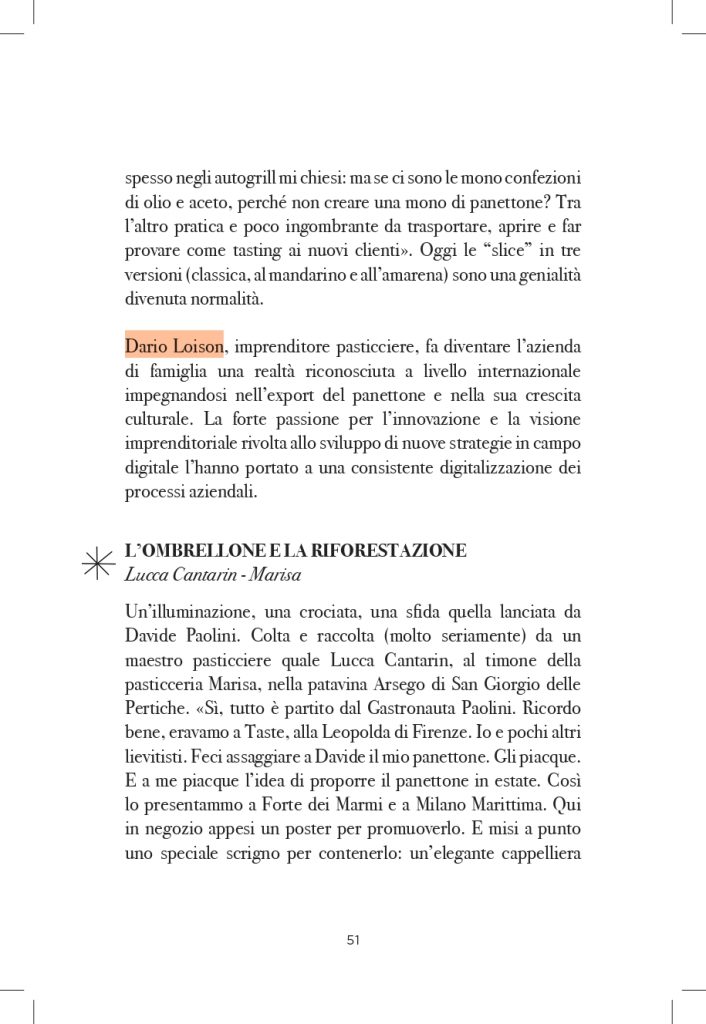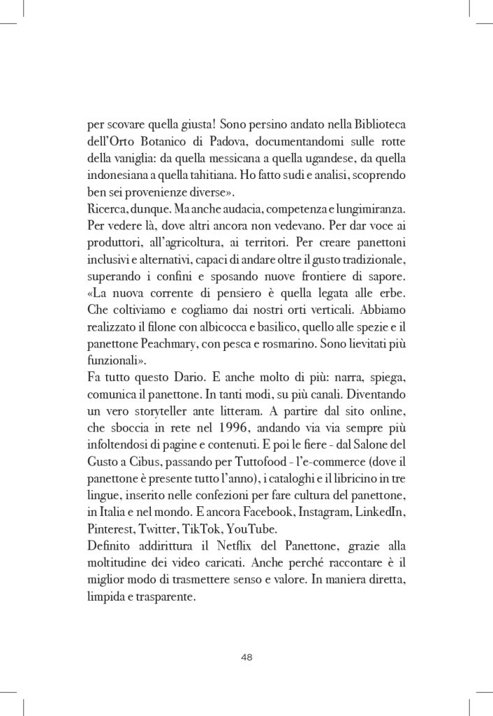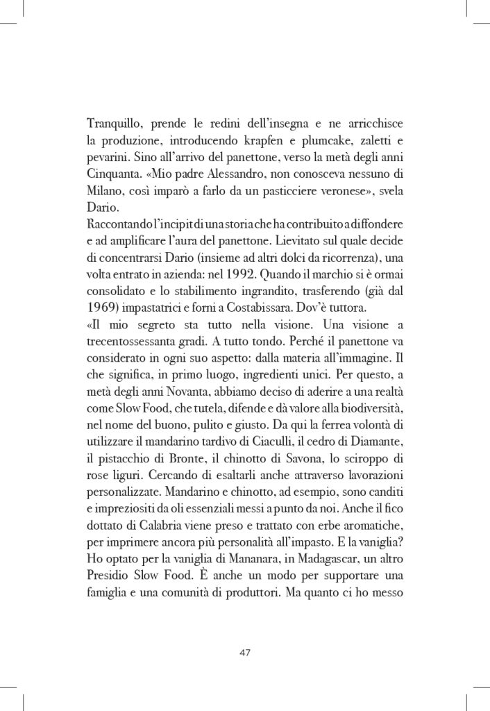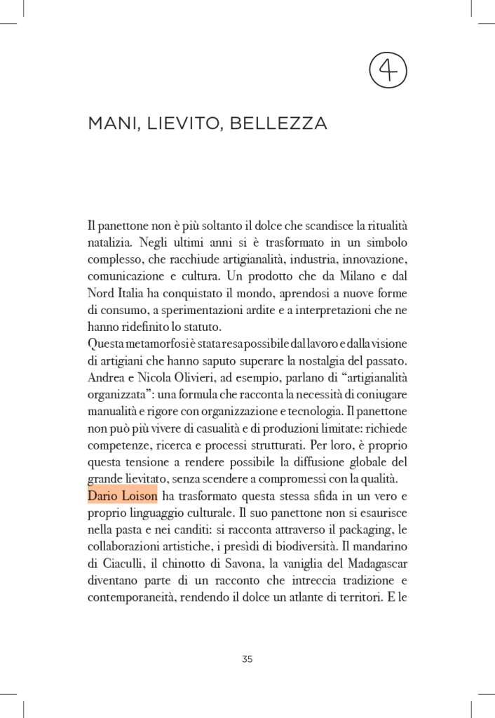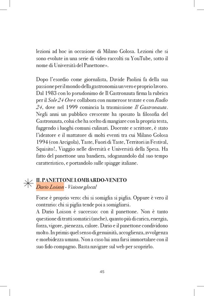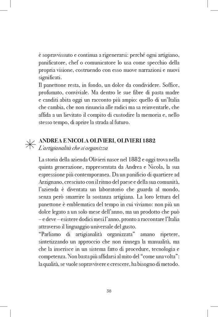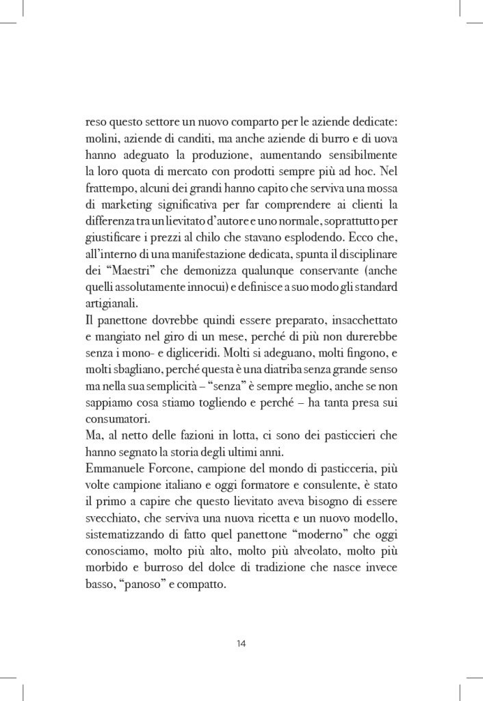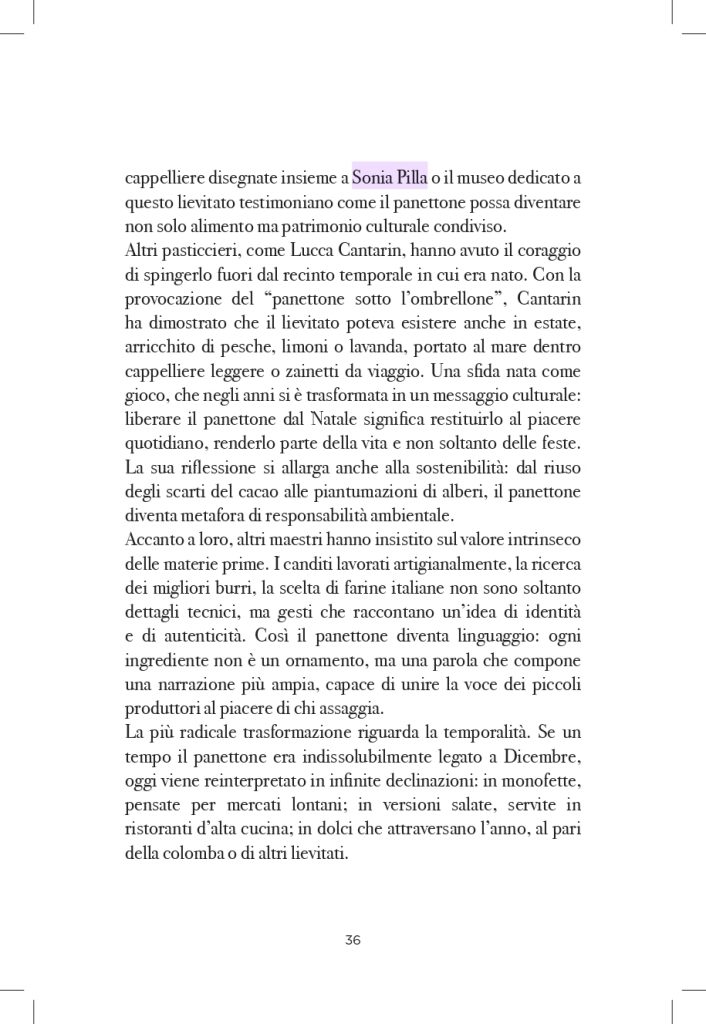 Anna Prandoni analizza il panettone, lievitato natalizio per eccellenza, come simbolo della pasticceria contemporanea e ambasciatore del Made in Italy gastronomico. Ripercorre origini ed evoluzione del dolce, osservandolo come fenomeno culturale e sociale e raccontandone la storia recente lungo tutta la filiera produttiva, dai pasticceri alle industrie, fino agli ingredienti che lo rendono unico.